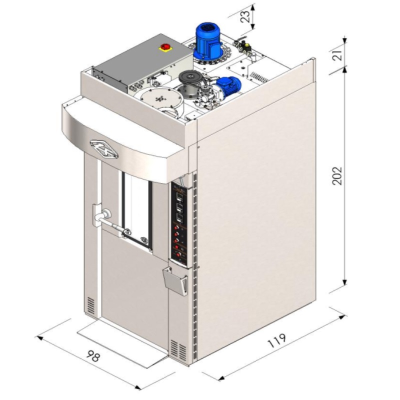 Le Four Rotatif Électrique 15 Plaques 400x600 de Zucchelli Forni, connu sous le modèle MINIROTOR E, est un équipement de boulangerie robuste et performant. Doté d'une surface de cuisson de 3.6m², il permet une production efficace pour répondre à la demande croissante de vos clients. Avec une puissance électrique de 23.5 Kw, ce four assure une cuisson uniforme et de haute qualité, offrant ainsi des résultats fiables à chaque utilisation. Son design compact et ses dimensions extérieures de 980x1190x2020mm en font un choix idéal pour les environnements de production de boulangerie de toutes tailles. Ajoutez le Four Rotatif Électrique 15 Plaques 400x600 de Zucchelli Forni à votre cuisine professionnelle dès aujourd'hui pour améliorer votre efficacité de production et offrir des produits finaux irréprochables à vos clients.