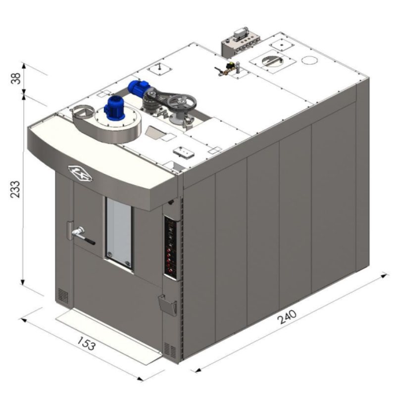 Le Four Rotatif à Convection Électrique 800x1000 de Zucchelli Forni, modèle Rotorfan 4, incarne l'excellence culinaire avec sa conception ingénieuse et ses fonctionnalités avancées. Avec des dimensions extérieures de 1530x2400x2330mm et une surface de cuisson de 14.4m², ce four offre une solution complète pour les cuisines professionnelles exigeantes.