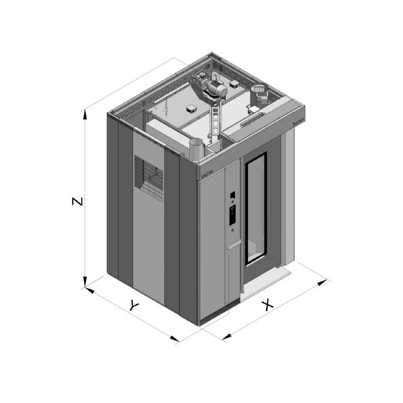 - Production intensive : chariot 100×80 cm, jusqu’à 18 niveaux pour 102 kg de pâte.