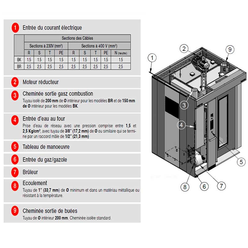 | Capacité | Chariot 100×80 cm – 14 à 18 niveaux (˜ 102 kg de pâte) |