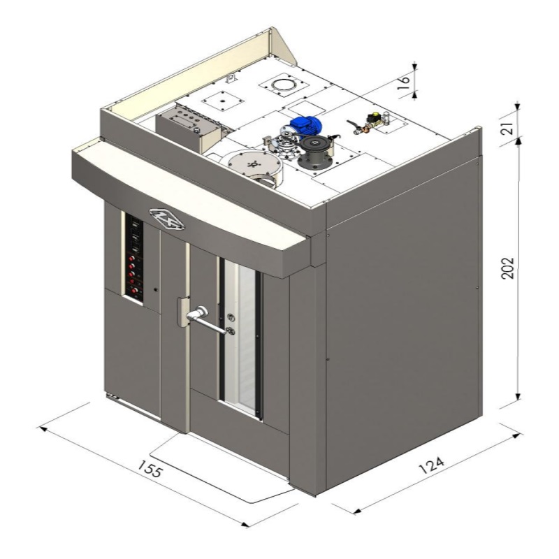 Le Four Rotatif Gaz/Fioul 15 Plaques 500x700 de Zucchelli Forni, également connu sous le nom de modèle Top minifalcon, est un choix idéal pour les boulangeries et les établissements de restauration nécessitant une production polyvalente et efficace. Doté d'une surface de cuisson spacieuse de 5.2m² et d'une puissance thermique de 35000 Kcal, ce four garantit une distribution homogène de la chaleur, permettant une cuisson précise et uniforme de divers produits de boulangerie. Avec des dimensions extérieures de 1550x1240x2020mm, ce four offre une capacité de production élevée tout en optimisant l'espace de votre cuisine. Optez pour le Four Rotatif Gaz/Fioul 15 Plaques 500x700 de Zucchelli Forni pour améliorer la productivité et la polyvalence de votre processus de cuisson.