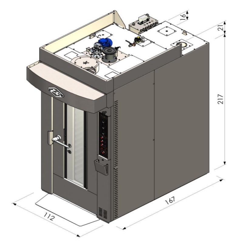 Le Four Rotatif Gaz/Fioul 500x700 18 Plaques de Zucchelli Forni, également connu sous le nom de modèle Rotorfan, est spécialement conçu pour répondre aux besoins de production à grande échelle des boulangeries et des établissements de restauration de haute capacité. Avec une surface de cuisson généreuse de 6.3m² et une puissance thermique de 40000 Kcal, ce four offre une répartition de chaleur uniforme, garantissant une cuisson précise et homogène pour une variété de produits de boulangerie. Ses dimensions extérieures de 1120x1680x2170mm permettent d'optimiser l'espace tout en garantissant une capacité de production élevée. Optez pour le Four Rotatif Gaz/Fioul 500x700 18 Plaques de Zucchelli Forni pour améliorer l'efficacité et l'évolutivité de votre processus de cuisson à grande échelle.