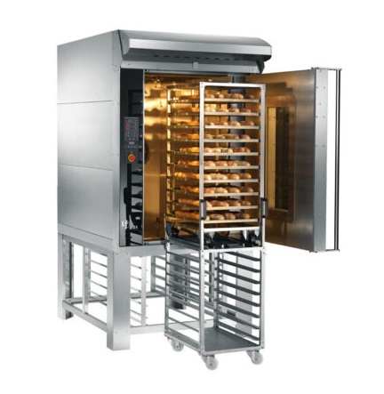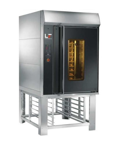 Le succès de ce four rotatif réside dans la qualité du projet initial où l'apport de conception était de réaliser des fours qui devaient durer dans le temps. Preuve en sont les grandes épaisseurs et la qualité des matériaux utilisés, la grande chambre de cuisson, le parcours particulier des fumées et la solidité et l'efficacité de l'échangeur de chaleur . Ce modèle dispose d'un accès arrière à l'échangeur. Disponible dans la version avec brûleur ou électrique. Four adapté à la cuisson de tout produit de boulangerie et pâtisserie ; grâce à son encombrement réduit, sa faible consommation et sa facilité d'utilisation, il est parfaitement adapté aux besoins des petits laboratoires. Le modèle Fox pour les petites productions a un chariot pour 10 plateaux.