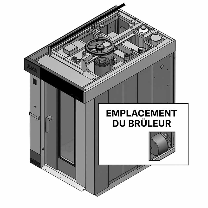 Sa structure inox double paroi isolée garantit une excellente efficacité énergétique et une durabilité exceptionnelle. Son accès latéral droit à l’échangeur facilite l’entretien et l’intégration dans tous types d’ateliers. Avec une capacité de 126 baguettes ou environ 85 kg de pâte par cycle, le SR-22 G31 assure un haut niveau de productivité et une qualité de cuisson artisanale constante.