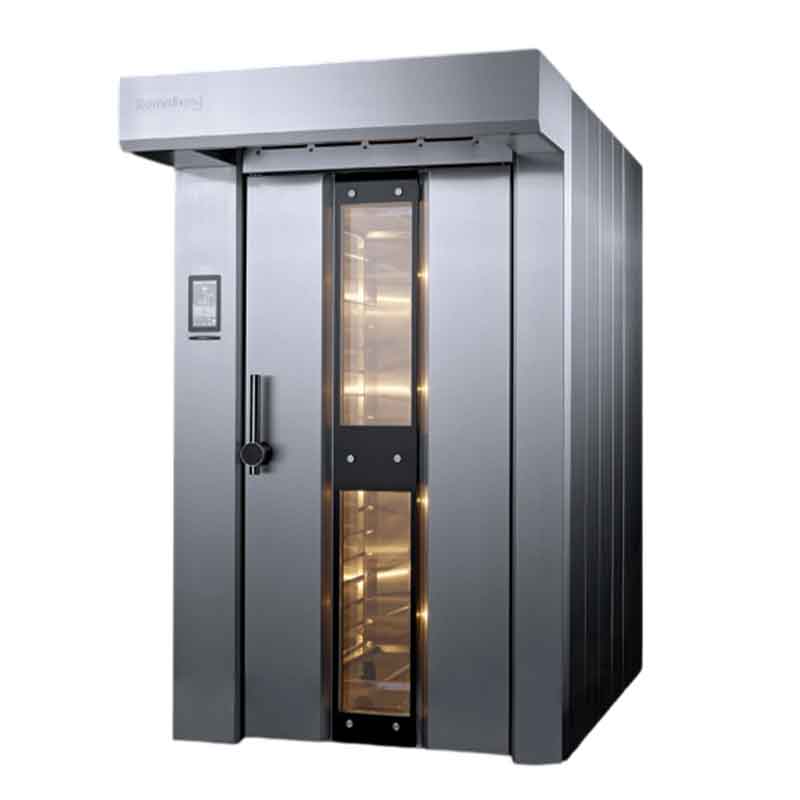 Son chariot rotatif 18 niveaux et sa construction inox garantissent une cuisson homogène, une durabilité élevée et une exploitation économique.
