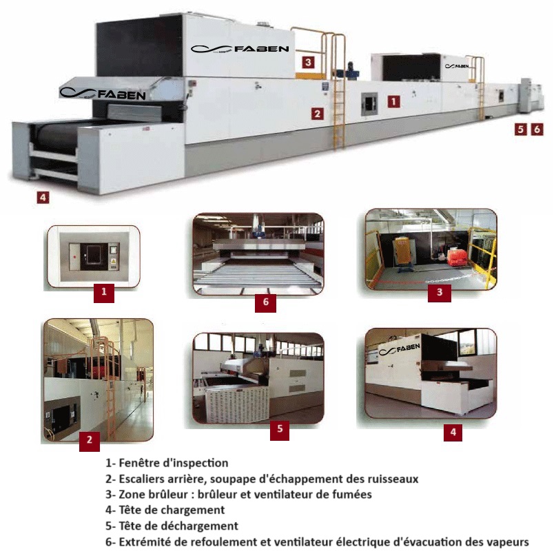 Les brûleurs du four peuvent fonctionner avec divers combustibles liquides ou gazeux, offrant ainsi une flexibilité énergétique maximale sans nécessiter de modifications complexes. Un tableau électrique centralisé regroupe tous les instruments essentiels pour le contrôle automatique de la température et des moteurs du four.