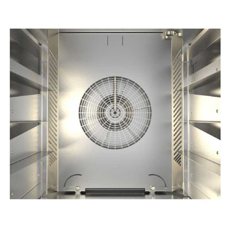 Doté de moteurs Brushless à haut rendement, le R-Spirit garantit une ventilation silencieuse, douce et parfaitement répartie, assurant une cuisson homogène sur l’ensemble des 5 niveaux. L’aéraulique a été développée avec l’aide de chercheurs en aéronautique pour offrir une propulsion d’air précise et non agressive, essentielle au bon développement des produits.