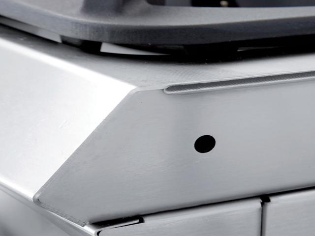 - Top embouti (20/10 mm), cuvette de récolte de liquide en acier inox AISI 304, emboutie et étanche.