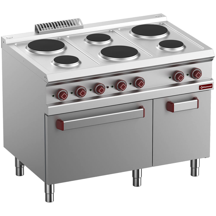 6 plaques, (3x 1,5 kW Ø 150 mm et 3x de 2,6 kW Ø 220 mm).