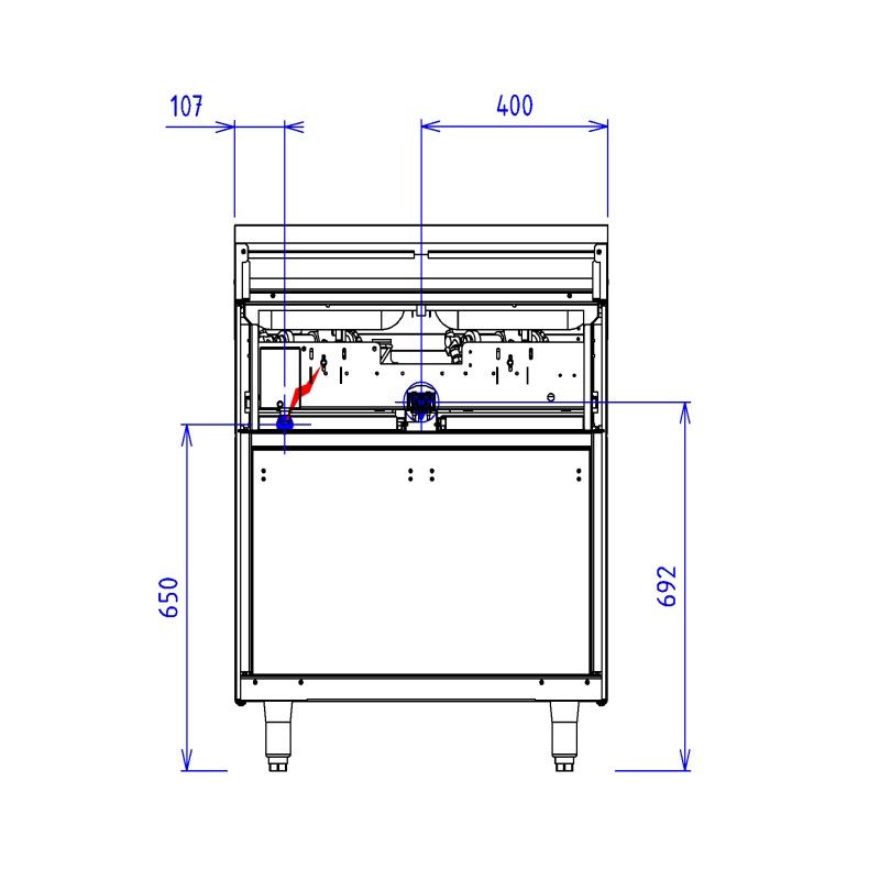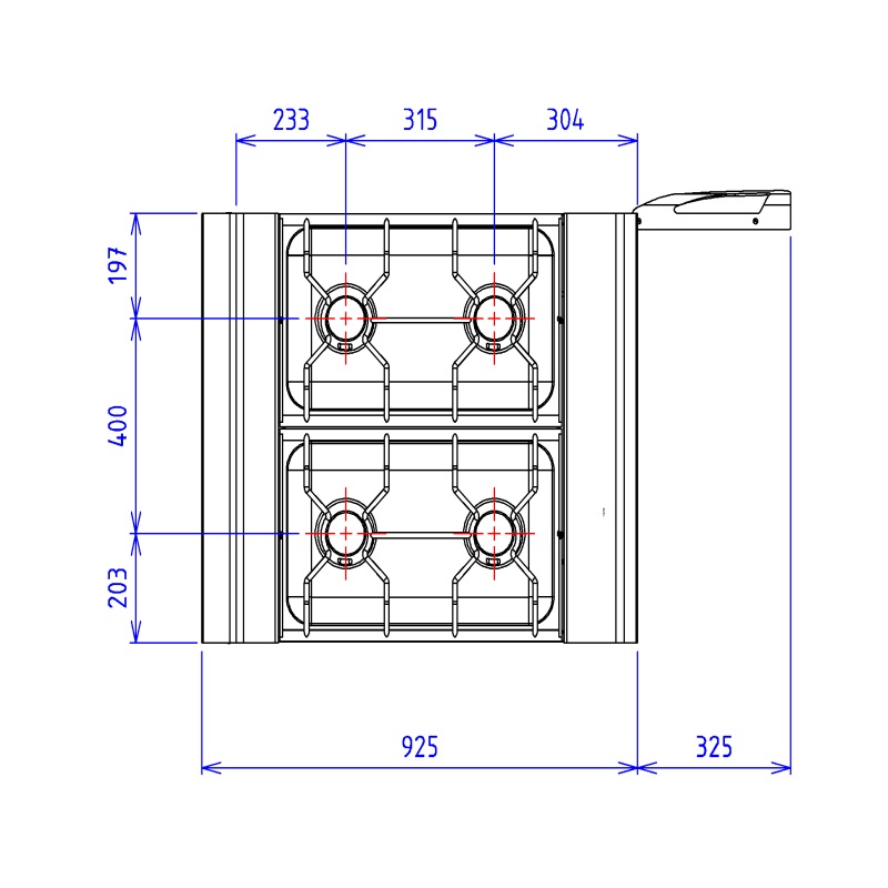 Le fourneau est équipé de 4 feux nus, chacun doté de brûleurs démontables à flamme pilotée, offrant une puissance de 4x6 kW. Les grilles des feux nus en inox mesurent 400 x 600 mm, assurant une répartition uniforme de la chaleur. Une cuvette emboutie et un tiroir de propreté sont intégrés pour faciliter le nettoyage. Les manettes de commande sont sécurisées et protégées, garantissant une utilisation sûre et efficace.
