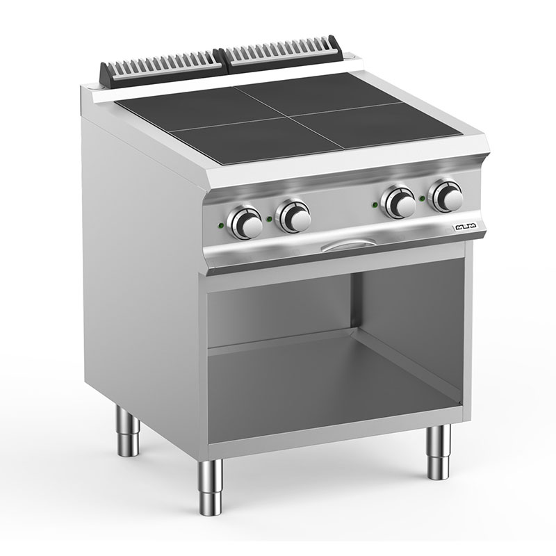 Commandez dès maintenant le Fourneau Électrique 4 Plaques Abaissées sur Baie Libre MBM PQR77A pour une cuisson polyvalente et efficace dans votre cuisine professionnelle.