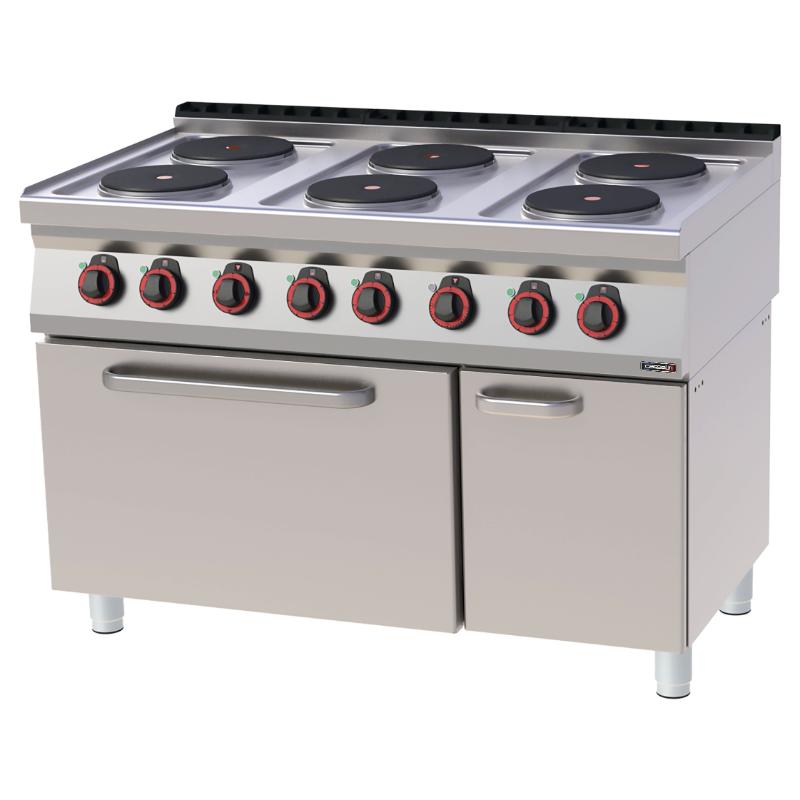 Fourneau électrique 6 feux avec four électrique statique GN 2/1 120