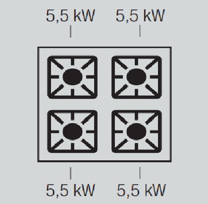 Le plan de travail emboutit de 45 mm de profondeur realisé en acier inoxydable AISI 304, permet une excellente circulation de l'air favorisant ainsi la performance des bruleurs, évitant les débordements des liquides, et simplifiant les opérations de nettoyage. Les bruleurs FLEX BURNERS amovibles en fonte et les chapeaux en laiton d'une puissance de 7 kW possèdent une flamme stabilisée. La flamme pilote est protégée et se trouve au sein de chaque bruleur. Les emplacements des bruleurs permetten l'utilisation des matériels jusqu'à 40 cm de diamètre. Les grilles de support casseroles peuvent être lavées au lave vaisselle. Versions sur four taille GN2/1 (gaz ou électrique): four double paroi en acier inoxydable, fond émaillé, porte en acier inoxydable double paroi avec isolation thermique. Cheminées en fonte. Le four gaz possède un bruleur de 6 kW (8 kW pour four maxi) à flamme stabilisée avec contrôle thermostatique de la température, vanne de sécurité et thermocouple. Allumage piezzo. Le four électrique est équipé de résistances blindées d'une puissance de 5,3 kW (2.6 pour le four ventilé) situées sur le haut et le bas de la chambre de cuisson. Contrôle thermostatique de la température indépendant haut et bas permettant de s'adapter à tous les besoins.
