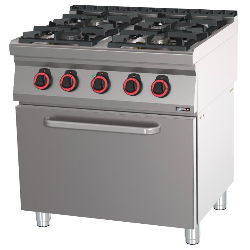 Fourneau gaz 4 feux avec four électrique ventilé GN 1/1 HP 80
