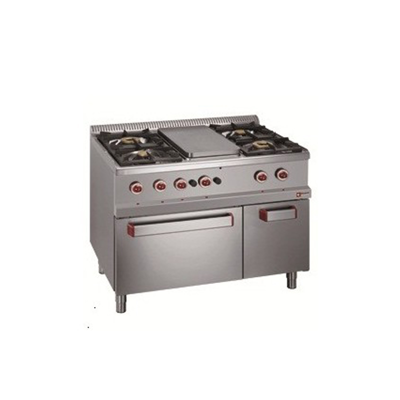 - Four gaz GN 2/1, chauffage par brûleurs en inox à flamme stabilisée. Régulation de la température du four de 150°C à 290°C, par une vanne gaz thermostatique.