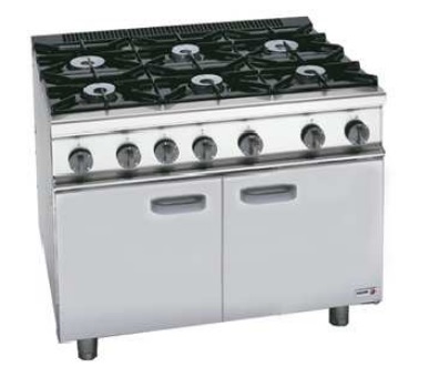 - Brûleurs et diffuseurs avec double couronne en fonte nickelée, garantissant l’uniformité de la distribution thermique sur tout type d’ustensiles, y compris de grandes dimensions, optimisant la production et la qualité du produit fini.