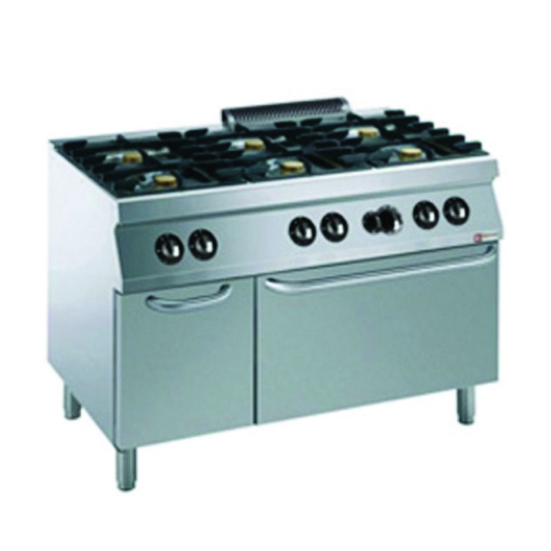- Four gaz, chauffage par brûleurs en inox à flamme stabilisée, régulation de 110°C à 270°C, en dotation 1 grille.