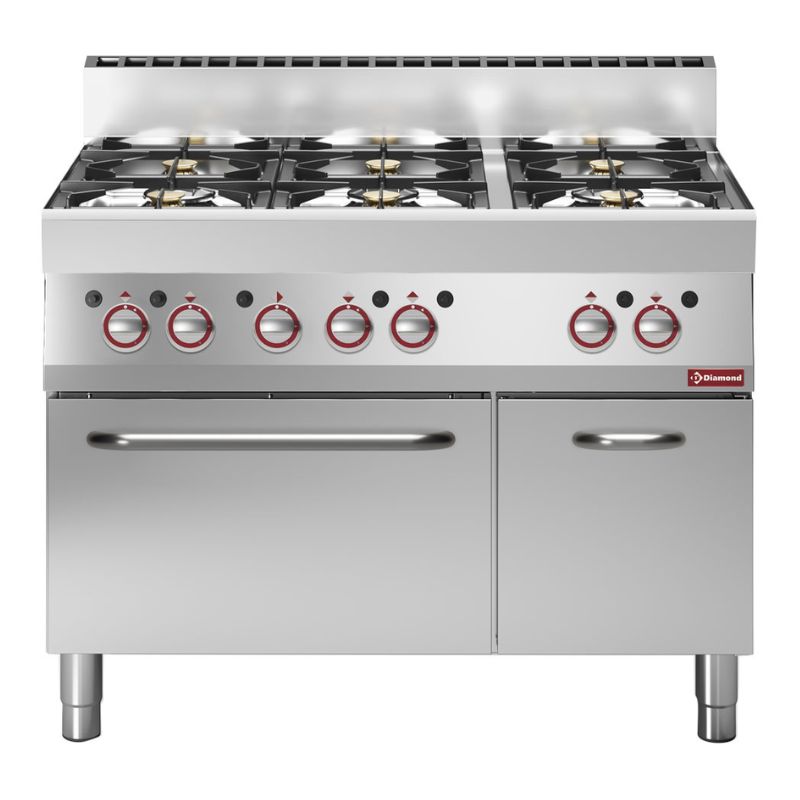 - 6 brûleurs, à feux vifs 3x 3,6 kW et 3x 5 kW.