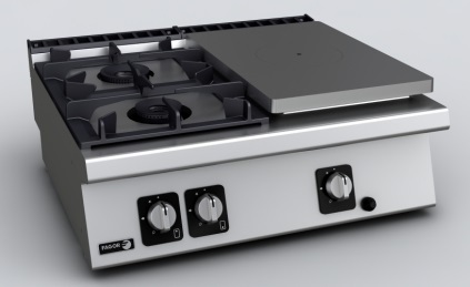 - Brûleurs et diffuseurs avec double couronne en fonte nickelée, garantissant l’uniformité de la distribution thermique sur tout type d’ustensiles, y compris de grandes dimensions, optimisant la production et la qualité du produit fini.