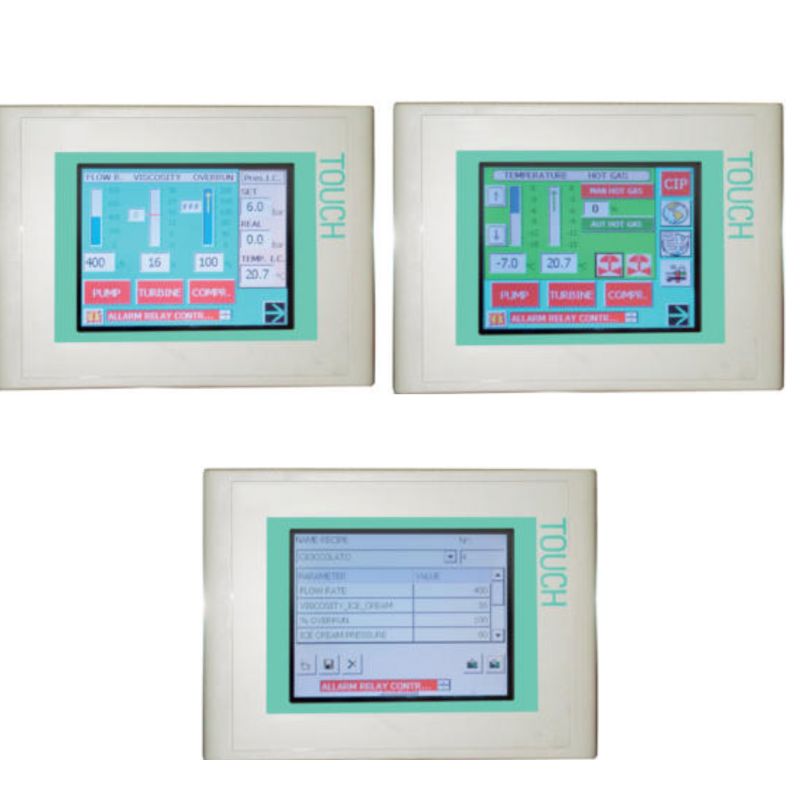Le Technogel EXPLORER400 est équipé d’un écran tactile intuitif qui vous permet de gérer facilement la production de crème glacée. Il offre une gestion de la production horaire, le contrôle précis de l'Overrun (incorporation d'air), et la possibilité de réguler la viscosité de la glace. Grâce à sa mémoire intégrée, vous pouvez enregistrer vos recettes personnalisées et bénéficier d’une grande flexibilité dans votre production. Ce système de démarrage automatique et d'autodiagnostic avec affichage des erreurs simplifie son utilisation, tout en garantissant une performance de haut niveau et une maintenance facilitée.