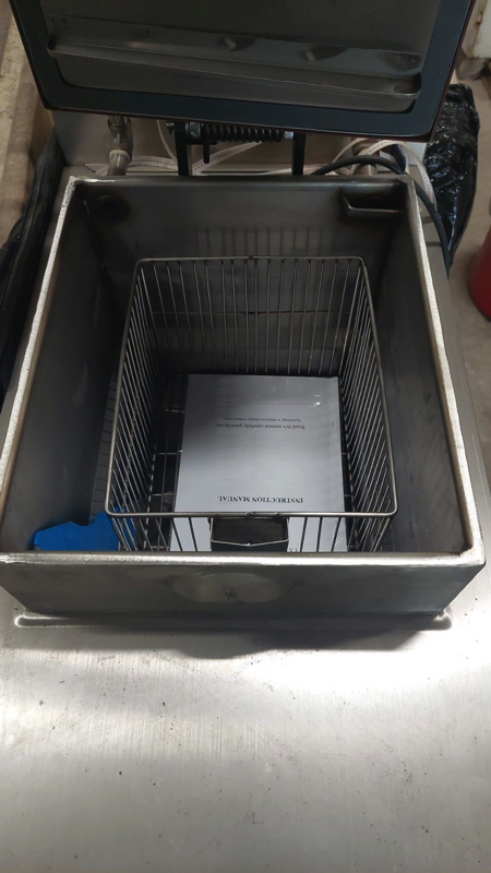 Poêle à frire rectangulaire en acier inoxydable robuste.