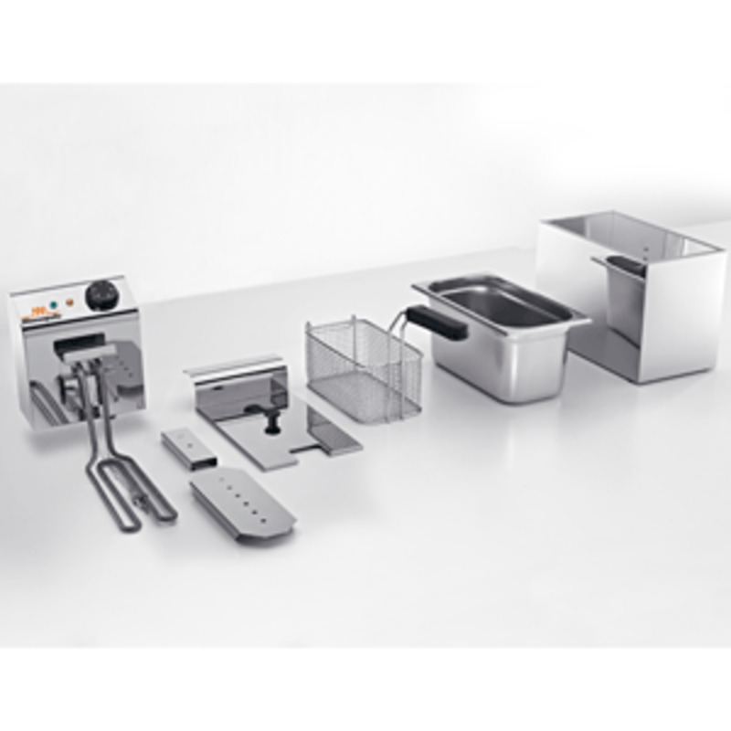 - Construit en acier inox - Panier renforcé - Thermostat et sondes cut-off de sécurité et bouton de remise à zéro - Résistances cuirassées - Corps réchauffant amovible et micro de sécurité - Protection antichoc sur des résistances facilement démontables - Position d’égouttement pour panier - Couvercle en dotation