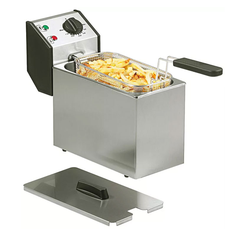 - Capacité optimisée : La cuve de 5 litres est idéale pour frire une quantité suffisante d'aliments, convenant parfaitement aux établissements de restauration rapide ou aux petites cuisines.