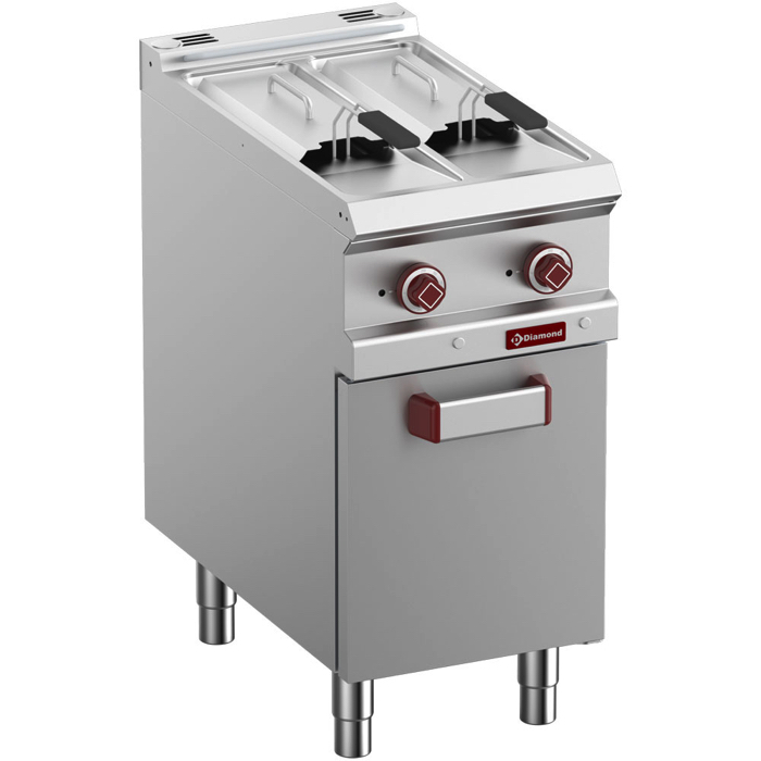 Le TOP spécialement embouti permettra d'égoutter aisément les paniers, ainsi que de contenir les éventuels débordement d'huile. La cuve est réalisée en acier inox AISI 304, complètement soudée (en continu). Une zone froide adaptée est réalisée sur le fond de la cuve, garantissant une qualité et une durée de vie des huiles de cuisson. Vidange des huiles aisée grâce au robinet de vidange placé en-dessous du meuble, ainsi qu'au bac de décantation muni de filtre en acier inox (fourni de série).