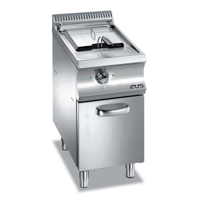 Le plan de travail est réalisé en acier inoxydable AISI304 18/10 dune épaisseur de 1,5 mm. Les cuves sont en acier inoxydable AISI 304 18/10, moulées et avec des angles arrondis. Les cuves sont fixées par soudure continue pour faciliter les opérations de nettoyage. Limportante zone froide permet d'accroître la durée de vie de lhuile et permet une récupération aisée des résidus de friture. Tous les modèles sont équipés de thermostats de sécurité ainsi que de thermostats de régulation (90-190 °C) permettant de conserver la qualité de lhuile. Un plan dégouttage est située sur le devant. Le système de récupération est simple et sécurisé grâce au bac de récupération équipé dun filtre inox. Version gaz avec brûleur interne: brûleur forte puissance à flamme horizontale, contrôle thermostatique de la température (90-190 °C), vanne de sécurité et thermocouple, allumage automatique avec flamme pilote et piezzo. Versions électriques: résistances blindées à lintérieur de la cuve. Les résistances basculent pour simplifier le nettoyage. Contrôle thermostatique des températures.
