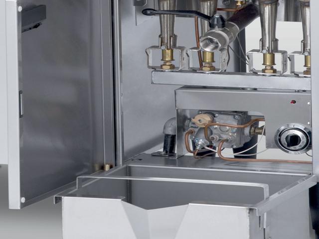 - Régulation par vanne thermostatique de 100° à 200°C. Thermostat de sécurité.