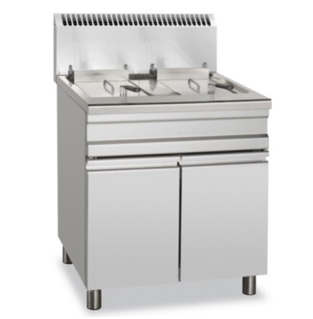 Les friteuses ont plan de travail en acier inoxydable. Gaz ou electriques. Les paniers sont en acier chromé, avec poignée athermique. Cuves avec zone froide pour accroitre la durée de vie de l'huile. Thermostats de régulation et thermostats de securité. Les friteuses gas ont bruleurs forte puissance avec flamme pilote et piezo.