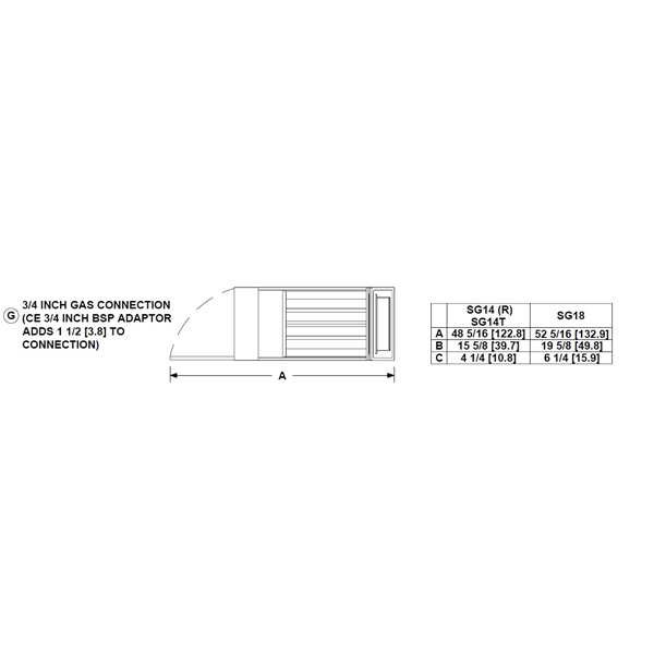 - Exigences particulières: ¾ pouces tuyau de gaz nécessaire.
