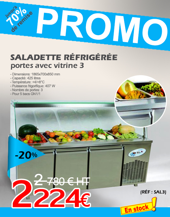 Quelque soit le métier de restauration que vous pratiquez vous êtes lié à la chaîne du froid et il vous faut du matériel frigorifique de qualité. Il vous faut donc être équipé de matériels frigorifiques comme des armoires réfrigérées pour les préparations faites avant l'heure. Mais aussi des vitrines réfrigérées comme matériel frigorifique pour présenter un buffet d'entrées ou de desserts. De même comme matériel frigorifique vous avez ici des saladettes réfrigérées pour maintenir le déjeuner ou le dîner au frais. Et pour les pâtissiers qui veulent stocker les gâteaux nous proposons comme matériel frigorifique des armoires frigorifique positives. Retrouvez toute notre gamme avec le prix le plus intéressant sur notre catalogue!