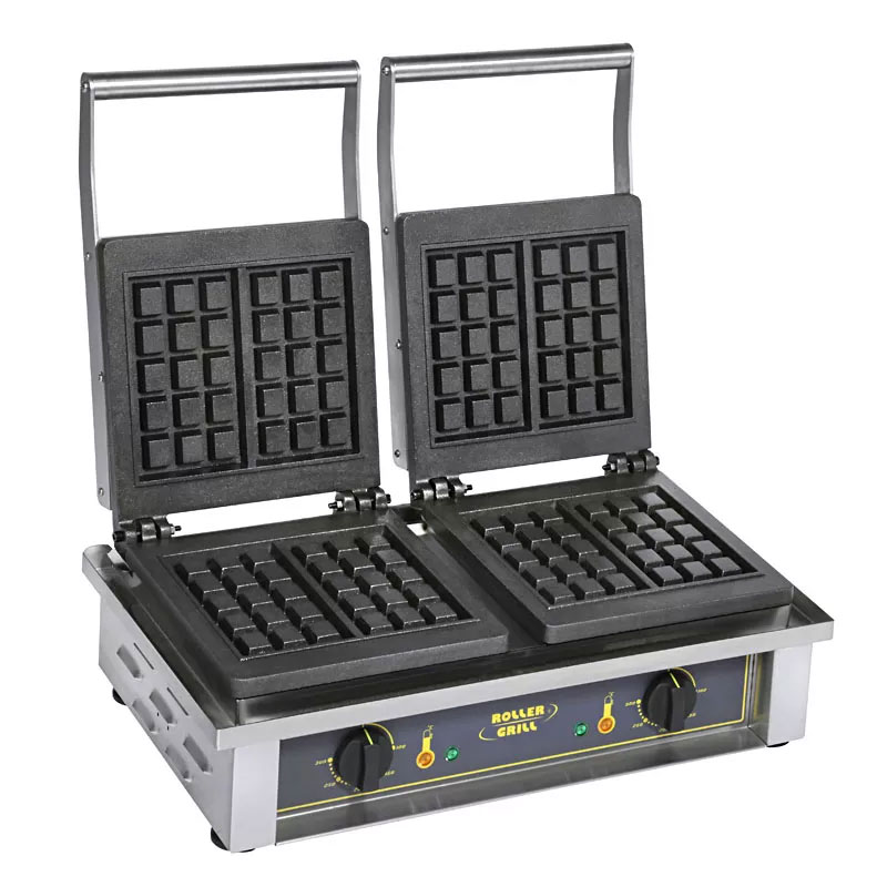 Le Gaufrier professionnel électrique double GED 10 de ROLLER GRILL est spécialement conçu pour les professionnels de la restauration souhaitant produire des gaufres de haute qualité. Équipé de deux moules, ce gaufrier permet de préparer rapidement et efficacement des gaufres de taille uniforme, idéales pour satisfaire une forte demande.