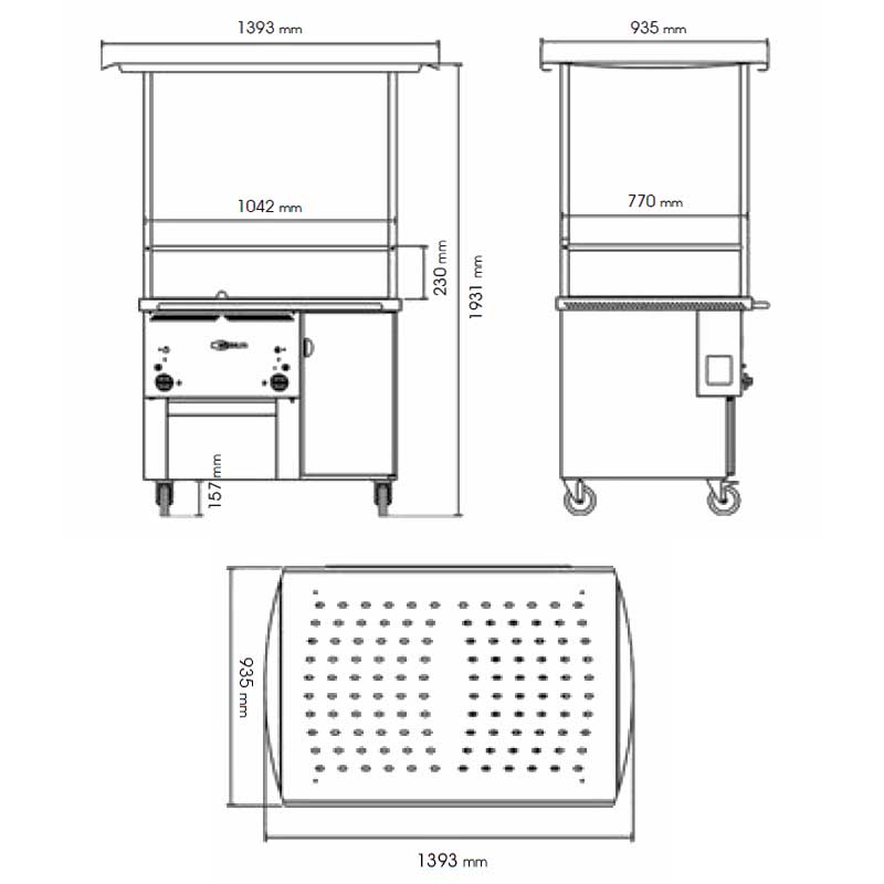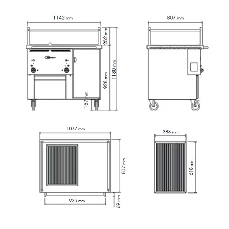 | Type | Gril à gaz professionnel avec hotte intégrée |