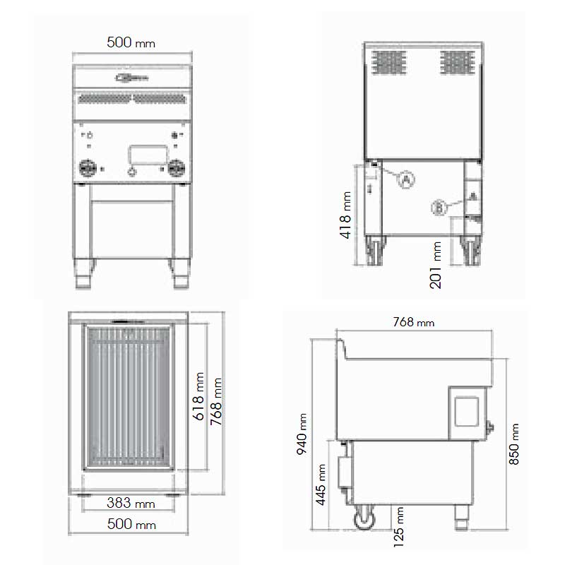 | Dimensions (L × P × H) | 500 × 768 × 850 mm |