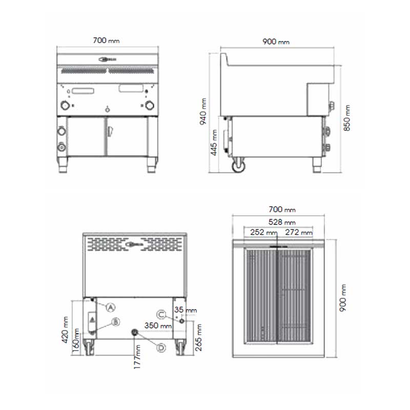 | Dimensions (L×P×H) | 700×900×850 mm |