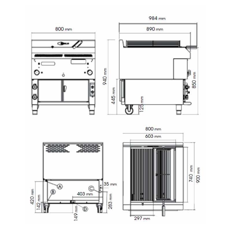 | Dimensions (L×P×H) | 800×890×850 mm |