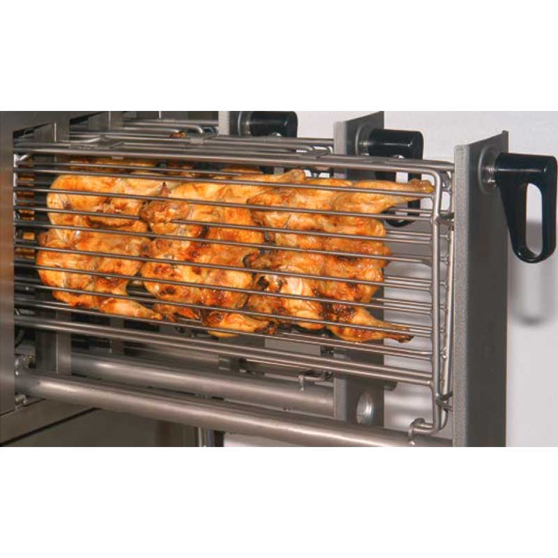 Le GRESILVA® GV3 est un gril vertical électrique professionnel conçu pour les rôtisseries, traiteurs, cuisines de supermarché et établissements de restauration souhaitant combiner rendement élevé, cuisson homogène et hygiène optimale. Avec ses 3 broches verticales et sa technologie de rayonnement infrarouge par résistances céramiques, le GV3 garantit une cuisson régulière sur les deux faces, sans flamme ni charbon. Compact, robuste et économique, il représente la solution idéale pour la cuisson de poulets, côtes, ribs ou brochettes à grande vitesse, tout en réduisant les fumées et la consommation énergétique.