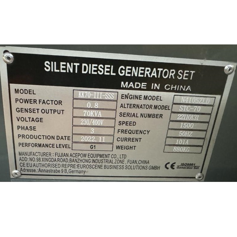 Groupe Électrogène Diesel Silencieux 70 KVA : Kawakenki KK70