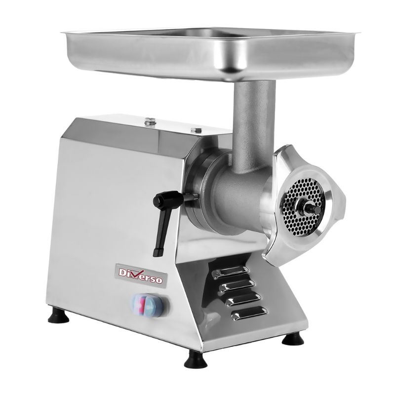 - Groupe hachoir démontable, (Ø 98 mm) (facilité d'entretien), inversion de rotation (en cas de bloquage). Grille de 6 mm et couteau en inox à 'auto-aiguisage'.