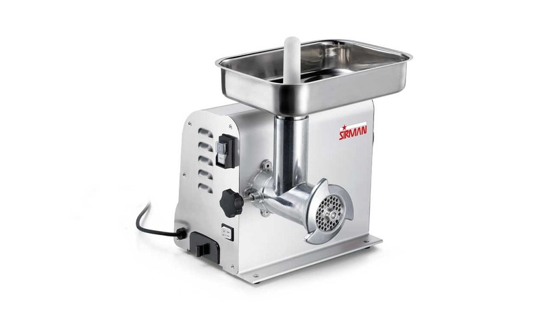 - Solide structure en aluminium anodisé. - Moteur ventilé. - Réducteur hache-viande hermétique avec engrenages à bain d’huile. - Engrenages hélicoïdaux trempés et rectifiés. - Bouche et hélice hache-viande en alliage alimentaire brillanté. - Plaque et couteau inox. - Pratique tiroir pour plaque et couteau. - Commandes avec inversion de marche standard. - Version CE avec: Commandes IP54 avec NVR.
