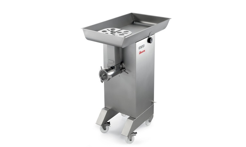 - Construction en acier inox AISI 304 lavable avec jet d’eau. - Réducteur hermétique à bain d’huile. Groupe de hachage: - complètement en acier inox AISI 304 - étudié pour des performances élevées - hautes performances même pour le deuxième hachage et pour les suivants - production horaire théorique jusqu’à 3500 Kg/h - résidus de viande à l’intérieur de la bouche 50-90 g - pivot entraîneur en acier inox - Système exclusif breveté de contrôle présence plaque (CE) - pivot hélice en acier trempé - démontage rapide du groupe de hachage pour le nettoyage et la désinfection - col d’introduction carré pour une vitesse de chargement plus rapide - ample trémie 563 x 900 h 120 avec micro de sécurité - commandes en acier inox IP 67 avec inversion de marche (version CE). Dotation standard: - couteau et plaque diam. 4,5 auto-aiguisant en inox - pilon - outil pour l’extraction de l’hélice et de la plaque - manuel d’usage et d’entretien. Options disponibles: - Commandes FULL CONTROL - bavette anti-éclaboussures en inox - commande à pédale - bouche double coupe inox - bouche triple coupe inox - protection bouche pour plaques avec trou > 8 mm - vaste disponibilité de plaques et de couteaux spécifiques. - FORMAT S - FORMAT A