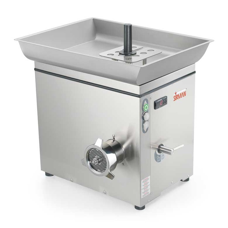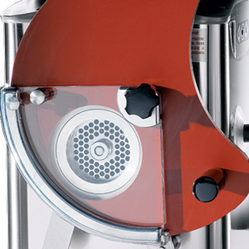 - Refrigerated laboratory meat mincer for maximum hygienic safety and for heavy duty - Powerful 4 HP self-ventilated IP 55 motors for continuous use - Machine body entirely made of AISI 304 stainless steel - Oil bath reducer with ground gears and double oil seal protection system - Practical head fixing with interlocked fixing lever (CE) - High production grinding head sett completely in stainless steel - Square introduction neck for high productivity even in the second pass - Refrigeration on the neck, head and hopper - Removable interlocked 21 liter hopper (CE) with neck up to the grinding area - IP 67 stainless steel control buttons with reverse and interchangeable silicone protection - Designed for quick and easy internal inspection Optionals: - Guard system for plates with hole> 8 mm - Unger head 3 pcs or 5 pcs - Format M hamburger attachment - 150 Watt refrigeration system - Giant 31 liter hopper - Medium st steel legs with wheels and brake - Removable stainless steel tray holder - Sausage filler attachment - SRCS wifi control board