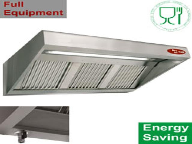 Optez pour la Hotte murale VORTEX moteur 7/7 1500mm, d'une dimension de 1500x900x450 mm, un débit de 1620 m3/h, 3 filtres anti-graisse à labyrinthes en acier inox AISI 430, de dimension 400x400 mm. Son moteur est en position centrale à la verticale avec un régulateur de vitesse de 3 positions (5 amp.) encastrées sur le frontal, et un interrupteur éclairage et une ventilateur centrifuge 'étanche” incorporé, boîtier électrique et grilles de protection . Cette hotte est réalisée en acier inox AISI 430, afin d'empêcher les dépôts de graisse peu hygiéniques sur les meubles et murs de la cuisine, sa partie non visible est composée d'acier galvanisé, et un assemblage par soudure à points. Elle dispose d'une goulette périphérique pour la récolte des graisses, munie d’un robinet de vidange, une lumière TL étanche IP65et une haute température.