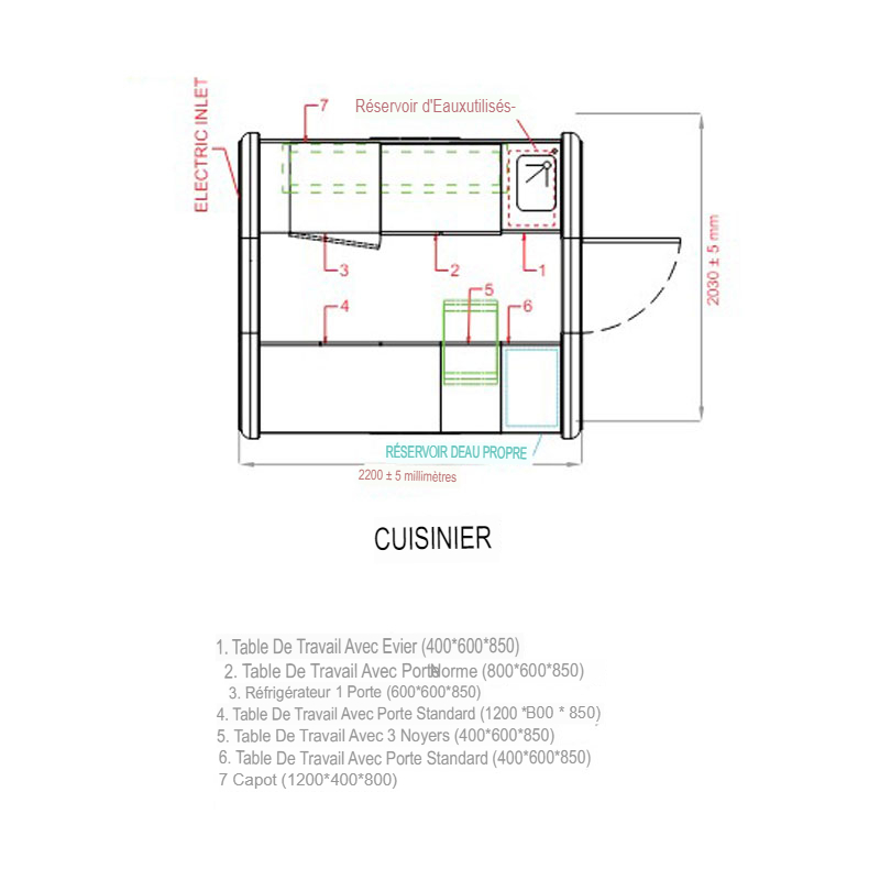 - Dimensions extérieures : 2200 x 2030 x 2180 mm