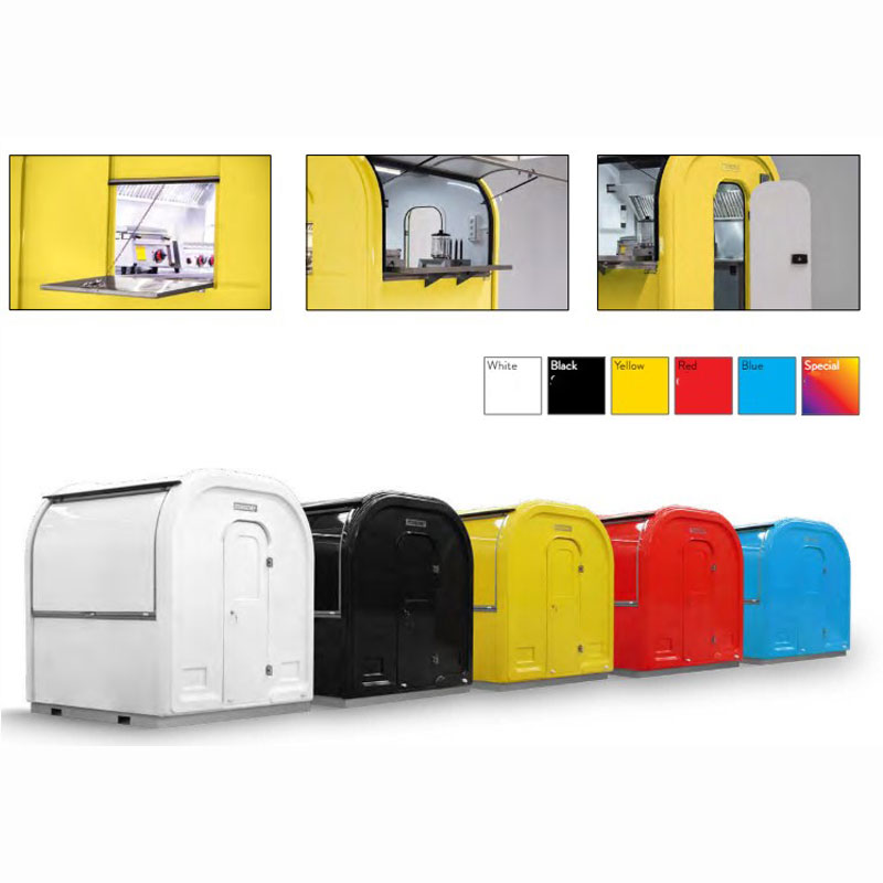 Idéal pour les festivals, marchés, événements privés ou toute autre activité nécessitant un kiosque de restauration rapide mobile, le KIOSK L275 vous permet de préparer et de servir des repas rapidement et efficacement, tout en offrant un service de qualité.