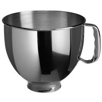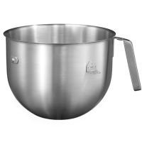 Bol en acier inoxydable poli muni d’une poignée ergonomique.