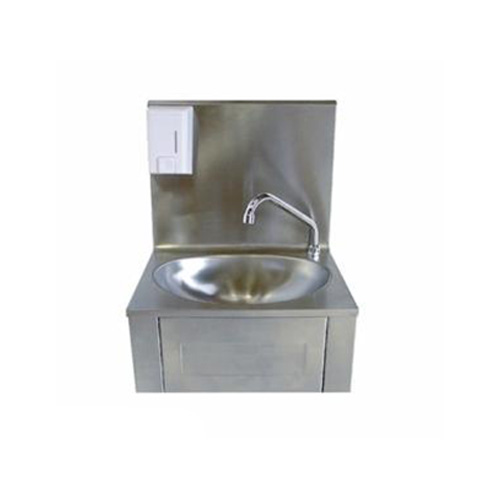 Produit en acier inox 18/10 Bassin Aisi 304 et jupe AISI 202 avec une finition Scotch Brite mené d'une commande par volet frontal basculant et un Dosseret monobloc embouti à bord supérieur incliné , avec un flexible de liaison inox 1/2 500mm, siphon et bonde diam. 32 polypropylène. Ce lave main dispose aussi d'un bec col de cygne, un pré-mélangeur EC/EF avec clapets anti-retour, des raccords, un réglage manuel par molette, et un robinet poussoir temporisée de dimension 15''.