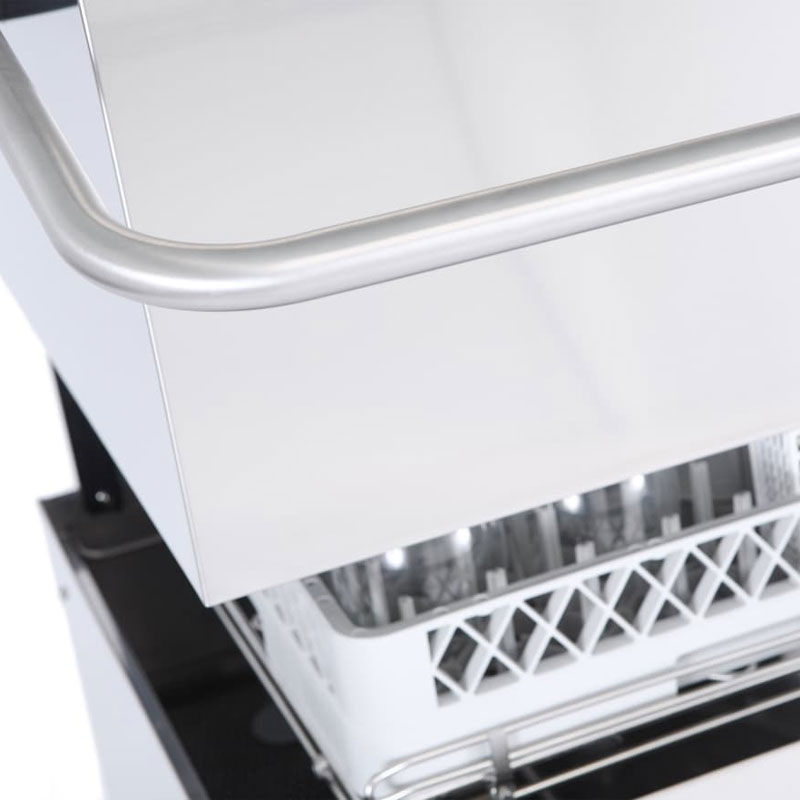 Pesant 130 kg, ce lave-vaisselle est conçu pour une utilisation intensive. Il est livré avec deux casiers de 500 x 500 mm, chacun équipé d'un insert pour couverts, offrant une grande capacité de chargement.